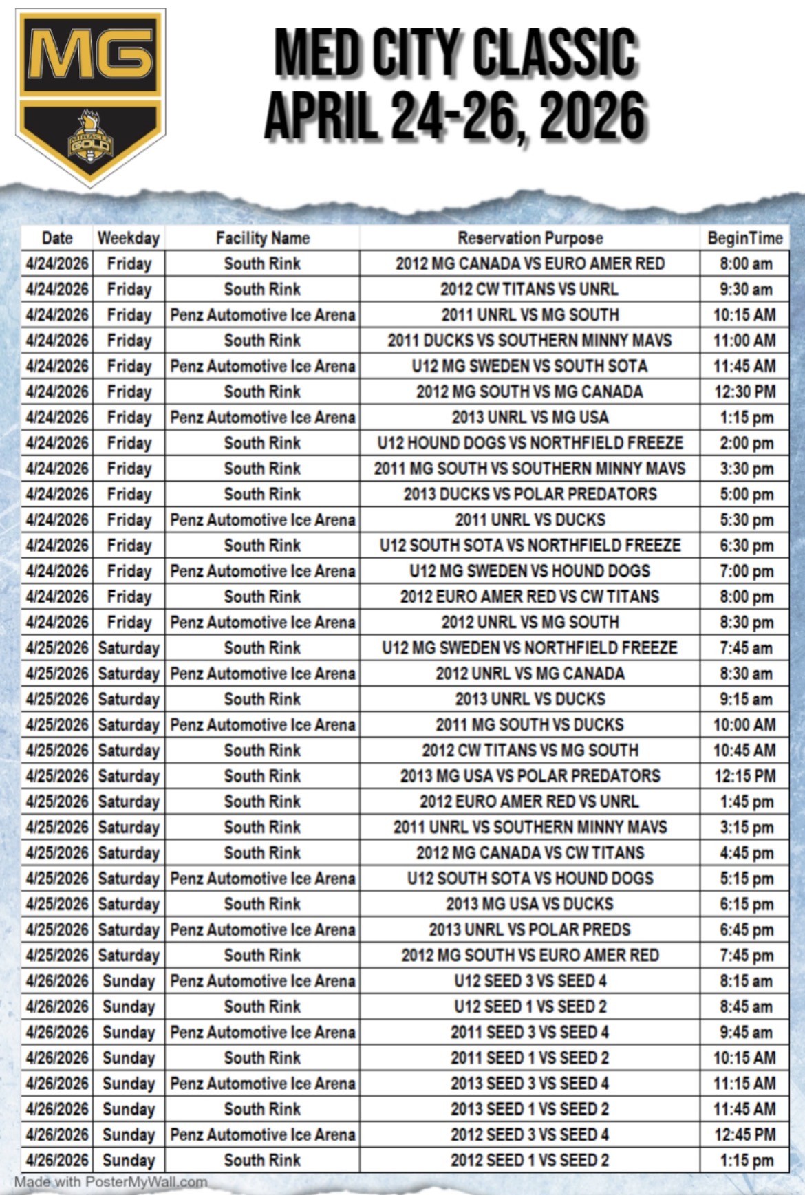 Miracle Gold's upcoming opportunities to play hockey!!