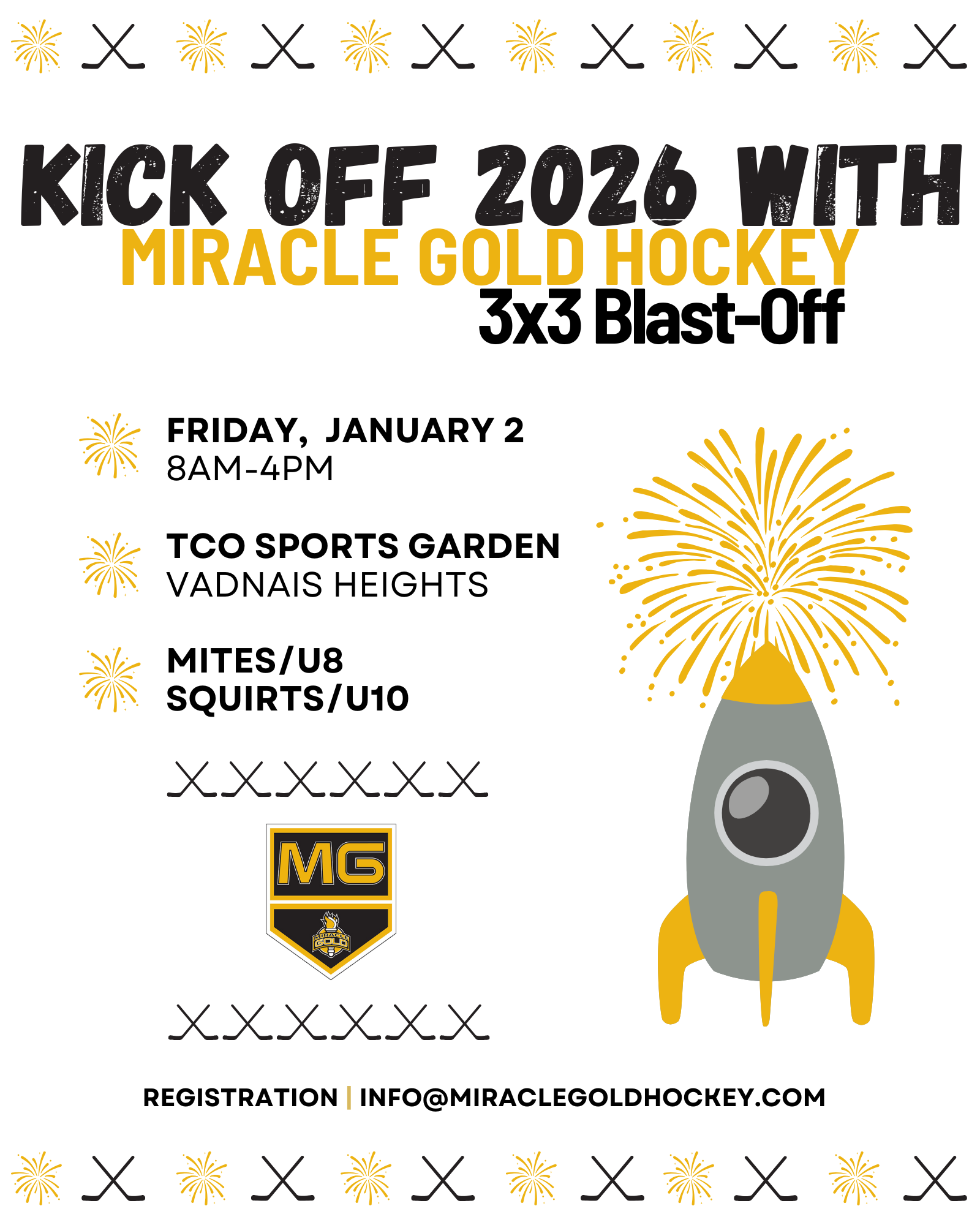 ONE DAY EVENT!!! Friday, January 2nd! Mites/U8 girls, Squirts/U10 girls will play 3X3 half-ice games. This is based on current level playing in 2025/2026 hockey season.